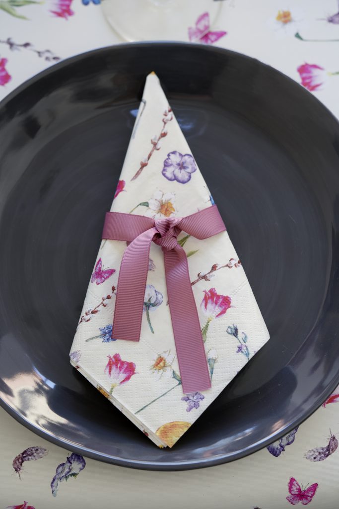 Bordet kan nemt pyntes op med servietterne der allerede er foldet. En praktisk løsning, der giver mere tid til gæsterne, fordi du ikke skal bruge tiden på at folde servietterne m.m.